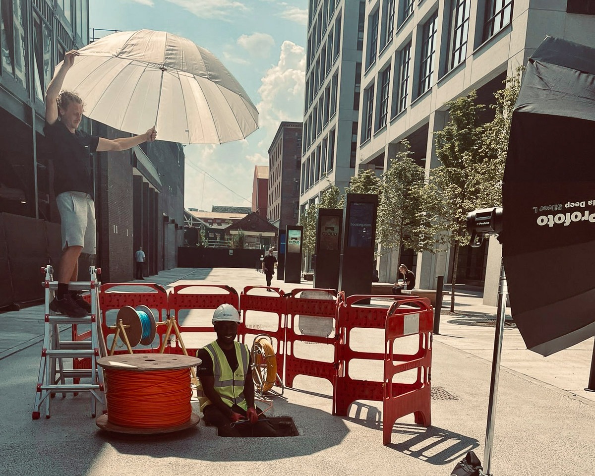 Behind the scenes photographing broadband engineers in Manchester City Centre